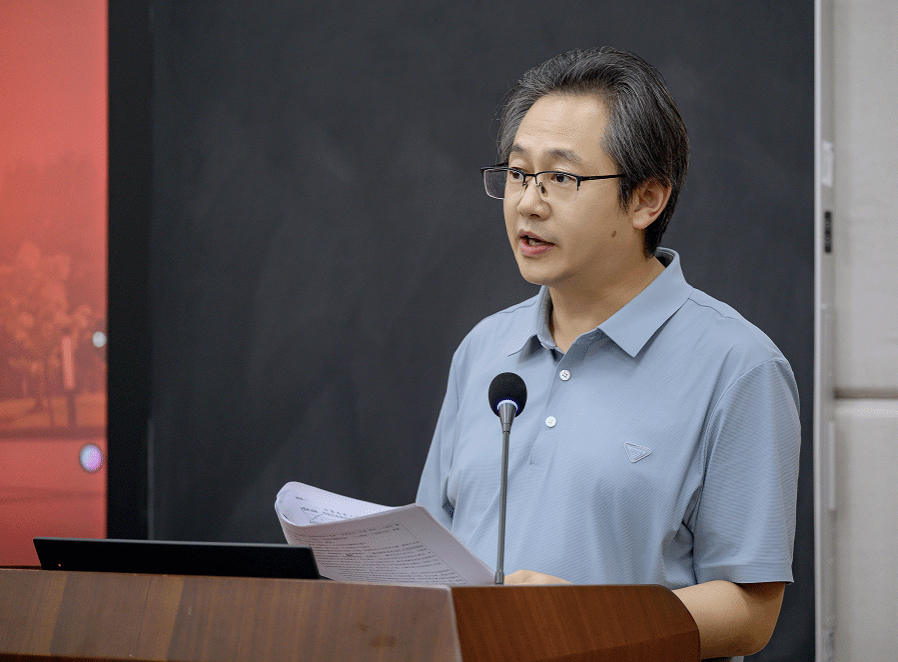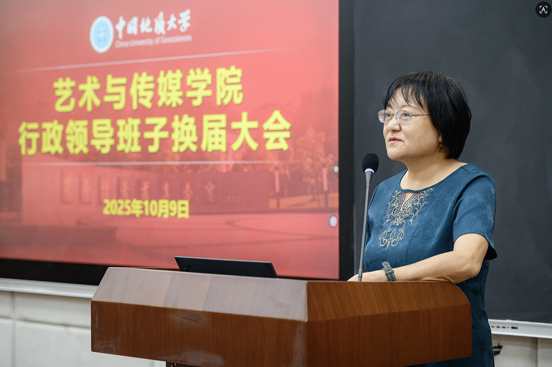 陈文武总结讲话。她诚挚地向本届行政领导班子及全体师生为学院事业发展付出的辛勤努力表示衷心的感谢,高度认可学院近年来所取得的一系列成就,对新一届行政领导班子扛起学院改革发展重担提出希望和要求:一是旗帜鲜明讲政治,做政治过硬的“引领者”。严格落实“第一议题”制度,坚持用的党的创新理论武装头脑、指导实践、推动工作,不折不扣落实学校党委行政有关决策部署。二是锐意改革创新,做事业发展的“开拓者”。围绕落实教育强国建设地大实践行动,找准学院发展定位,进一步凸显学科特色,在拔尖创新人才培养、设计学博士点申报、特色新闻传播、美育建设等标志性成果产出方面实现新突破,培养具有家国情怀、专业能力和人文素养的艺术传媒人才。三是凝人心聚合力,做团结务实的“示范者”。坚持民主集中制,依法依规办院治院,密切联系师生,凝聚干事创业的整体合力。四是清正廉洁作表率,做优良生态的“营造者”。认真履行“一岗双责”,严明纪律规矩,营造风清气正、潜心育人、专注学术的良好政治生态和育人环境,以更加开阔的视野、更加昂扬的斗志、更加务实的作风,奋力书写杏色