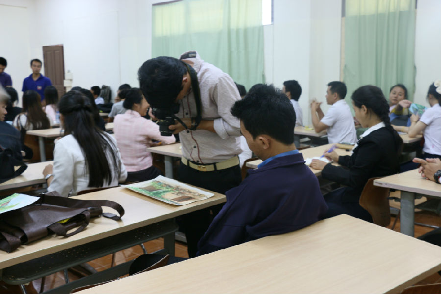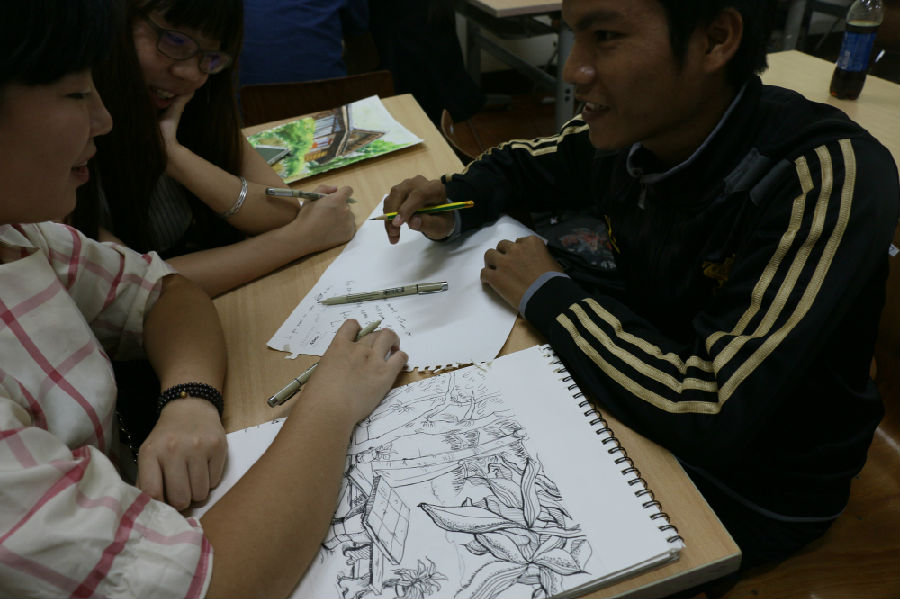 九月九日,老挝写生组受老挝苏发努冯大学建筑学院邀请前往该校交流,交流活动主要包括:首先,写生组教师为建筑学院师生进行专业讲座,以写生组同学作品为例介绍杏色 艺术教育的教学思路和认识方法,其次,建筑学院教师陪同写生组师生参观学院教学设施及环境,最后建筑学院同学与写生组同学分组交流。