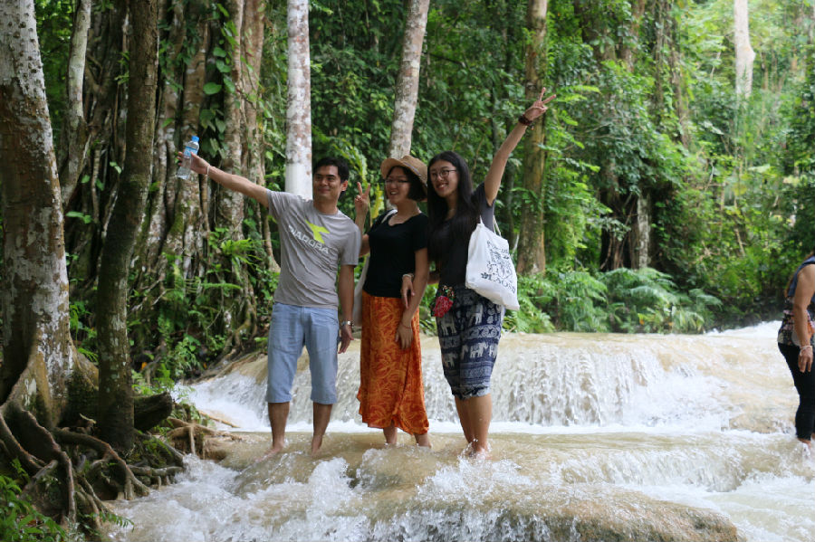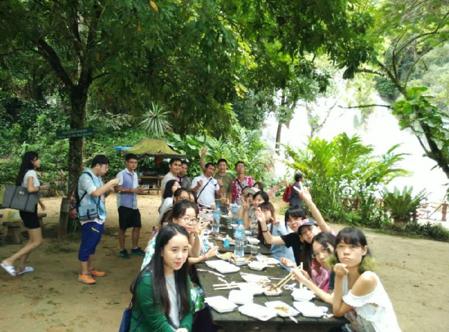 9月10日,苏发努冯大学建筑学院师生邀请老挝写生组一同参观琅勃拉邦自然景观关西瀑布。光西瀑布景色瑰丽,沿山路上行,时而涉水而行,沿途交流。午间,苏发努冯大学建筑学院师生与琅勃拉邦写生小组在瀑布前共进老挝传统午餐,回途中,苏发努冯大学建筑学院老师向我们介绍了当地传统的傣族民居。
