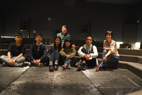 (师生在美国斯坦福大学电子音乐与声学研究中心3D试听实验室)