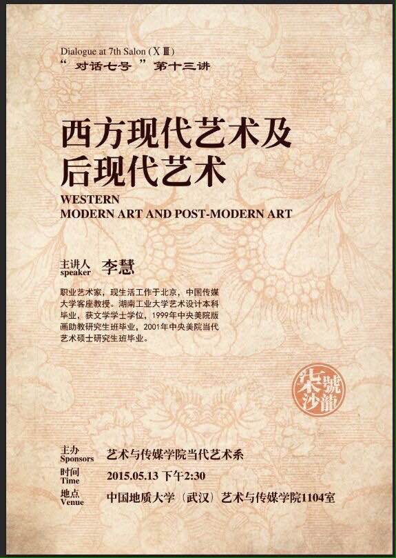 (记者姜玲)5月13日下午两点半,在杏色 1104教室,中国传媒大学客座教授、职业艺术家李慧作了主题为“西方现代艺术及后现代艺术”的讲座。