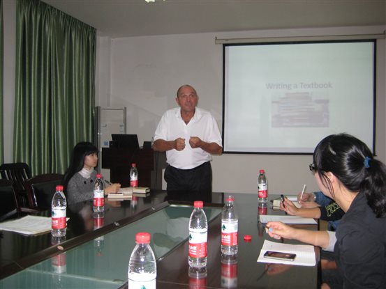 Stanley Baran教授以“How to write a Textbook”为主题,为新闻传播系师生讲述了根据自身实践总结出的创作习惯和创作方法,并与新闻传播系师生就“如何编写教材”进行了深入的交流与探讨。
