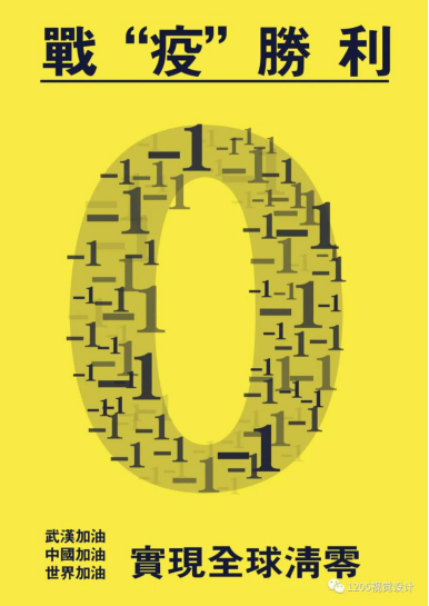 创意说明:该设计为一副文字招贴设计,现如今不止武汉,不止中国,整个世界都在为治愈新型冠状病毒努力着,努力实现全球清零,争取早日取得战“疫”胜利,设计中心用数和-1拼凑成一个“0”,寓意着患者和新增病例的减少逐渐实现清零,相信“0”这个数字现在有很多人喜欢,希望通过我们的努力早日实现全球清零!