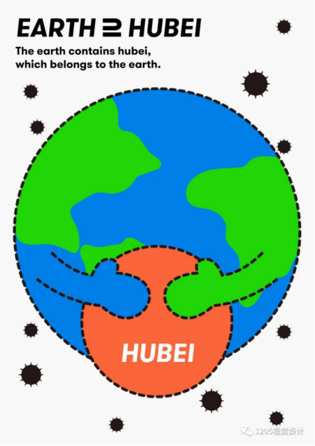 创意说明:地球包含湖北,湖北属于地球。面对疫情你我息息相关,共同维护世界和平。