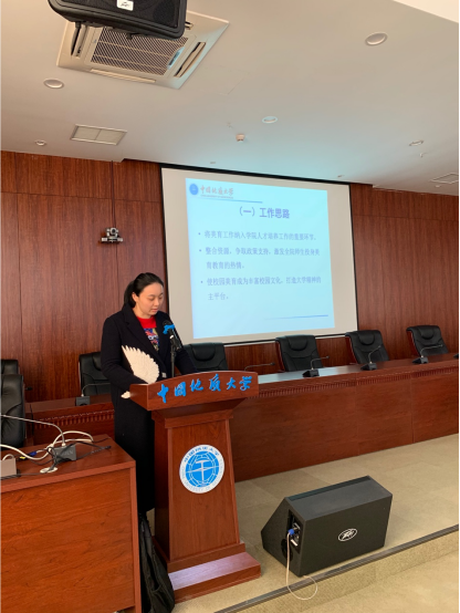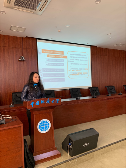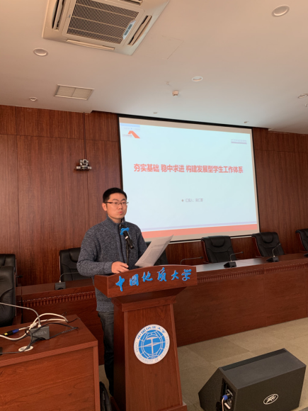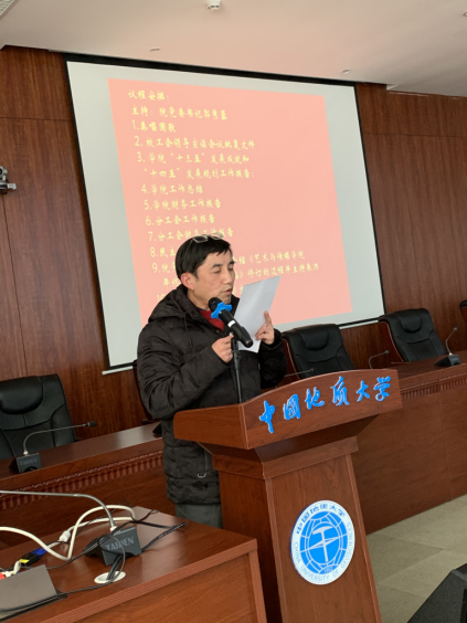 最后,傅安洲副校长总结讲话,他向受到表彰的先进个人表示衷心的祝贺,对学院一年来取得的成绩和进步给予充分肯定。傅校长回顾了地大办学历史,指出学校办学优势,梳理了杏色