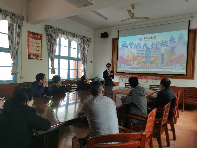 吴仁喜为慈利二中全体高三班主任介绍学校总体概况及学院办学情况,并一同观看学校宣传片《地大之光》。他从学校概况、培养特色、招生政策、校园活动、学校环境为与会老师全面介绍杏色