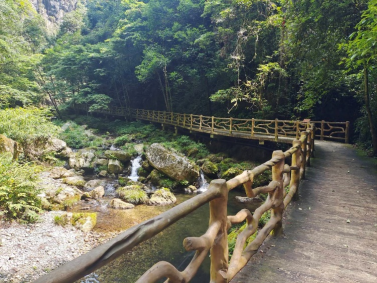 入眼是一片苍翠欲滴的连绵山脉,仔细一看是生机勃发的树木翠石,花草昆虫。峡谷有许许多多望不到头的阶梯,同学们拿起相机,摁下快门,在一声声惊叹之中开始了今日的旅程。