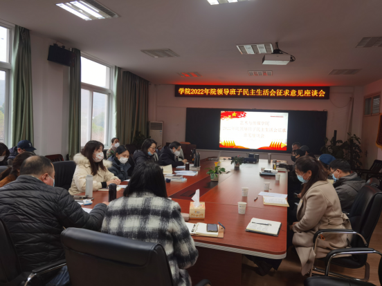 2022年领导班子民主生活会征集意见座谈会在学院1209会议室召开,学院领导班子、党委委员、各三级单位负责人、教师党支部书记、支委及普通教师代表参加会议,座谈会由学院党委书记郭秀蓉主持。