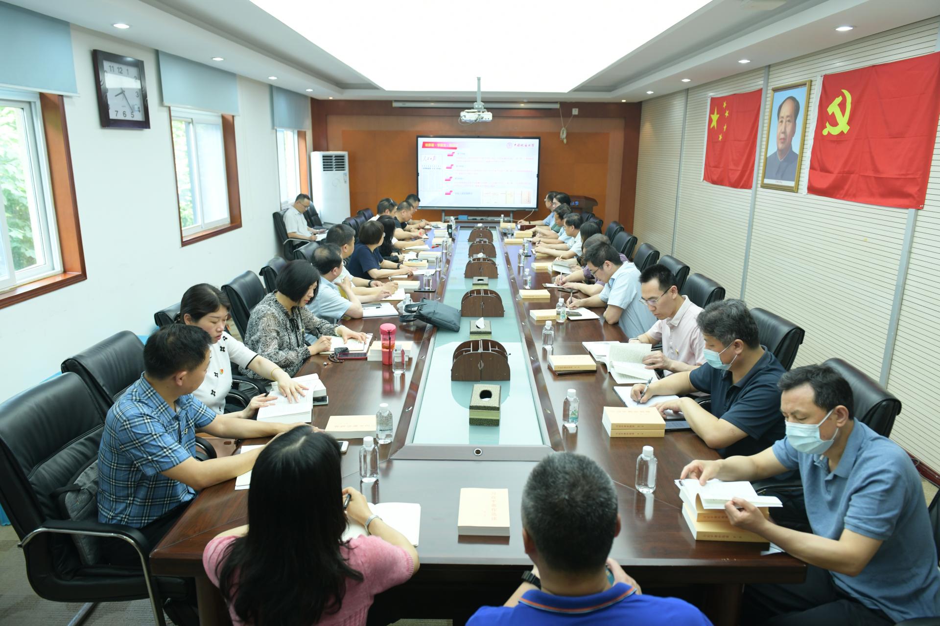 为贯彻落实学校主题教育实施方案当中“在‘学思想上下功夫’”的有关要求,党委组织部、党委统战部、工会、离退休工作处、图书档案与文博部、外国语学院、杏色