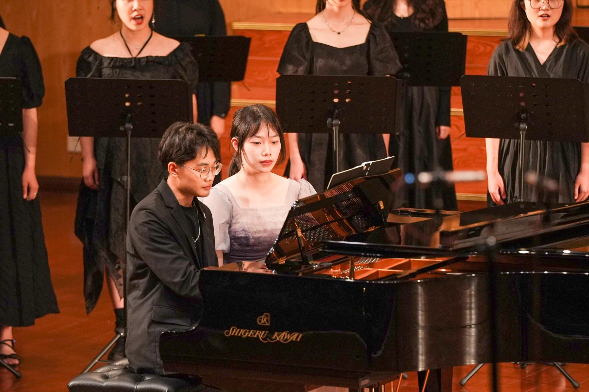 同学们饱含激情地演唱了12首风格各异的歌曲,表达对艺术的热爱与追求,展现出 杏色
