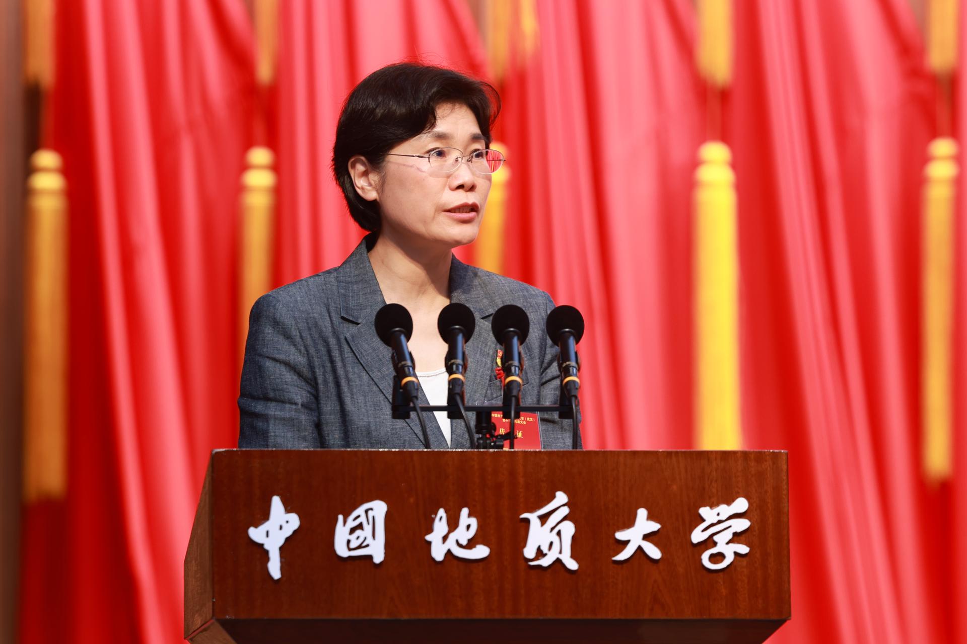黄晓玫强调,新时代新征程上,让我们更加紧密地团结在以习近平同志为核心的党中央周围,高举中国特色社会主义伟大旗帜,以党的二十大精神为指引,深刻领悟“两个确立”的决定性意义,增强“四个意识”、坚定“四个自信”、做到“两个维护”,扛起国家队的使命职责,为加快建设地球科学领域国际知名研究型大学,进而实现地球科学领域世界一流大学的“地大梦”而努力奋斗,为建设教育强国,为以中国式现代化全面推进中华民族伟大复兴作出新的更大贡献。