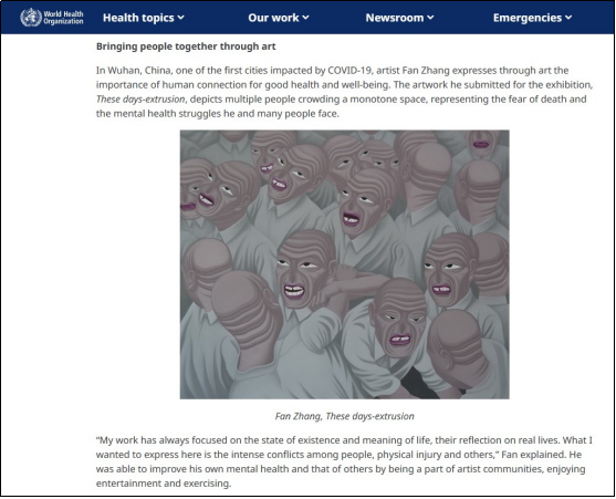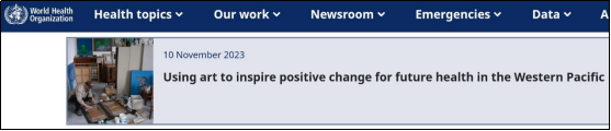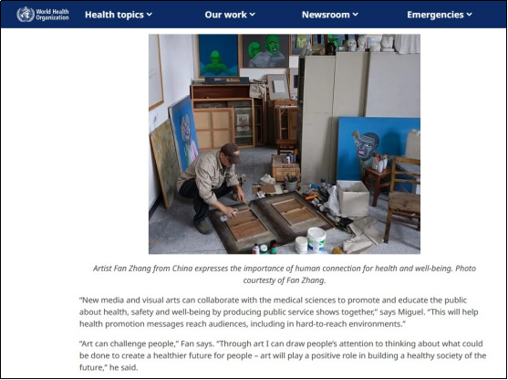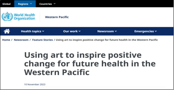 近日,世界卫生组织西太平洋区办事处(World Health Organization | Regional Office for the Western Pacific)官方网站在题为“Using art to inspire positive change for future health in the Western Pacific”的专题报道中刊发了杏色