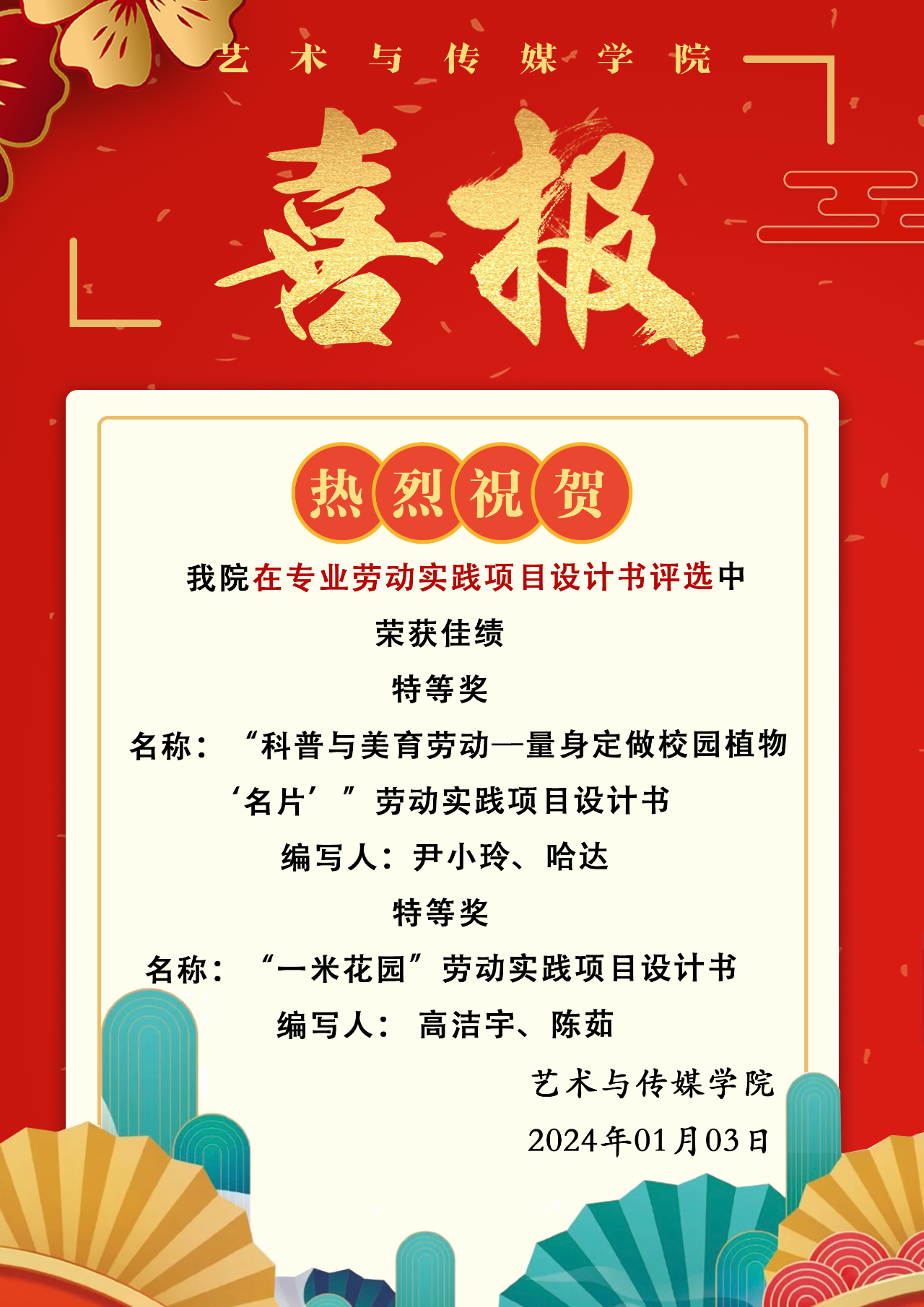喜报 | 热烈祝贺杏色 在专业劳动实践项目设计书评选中荣获佳绩