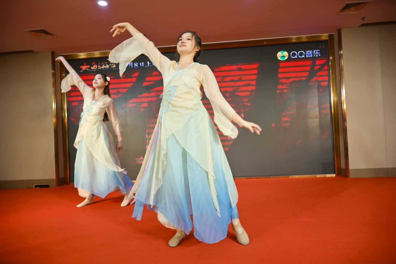 学生张阿雪、钟爱源、韩宏民、冀昱臣分别上台表演了舞蹈《大渔》、笛子与二胡重奏《青花瓷》。师生们婉转的歌声、曼妙的舞姿、动听的民乐演奏收获了在场观众的阵阵掌声,发挥自身的专业特长为校友们奉上了一场精彩的视听盛宴。