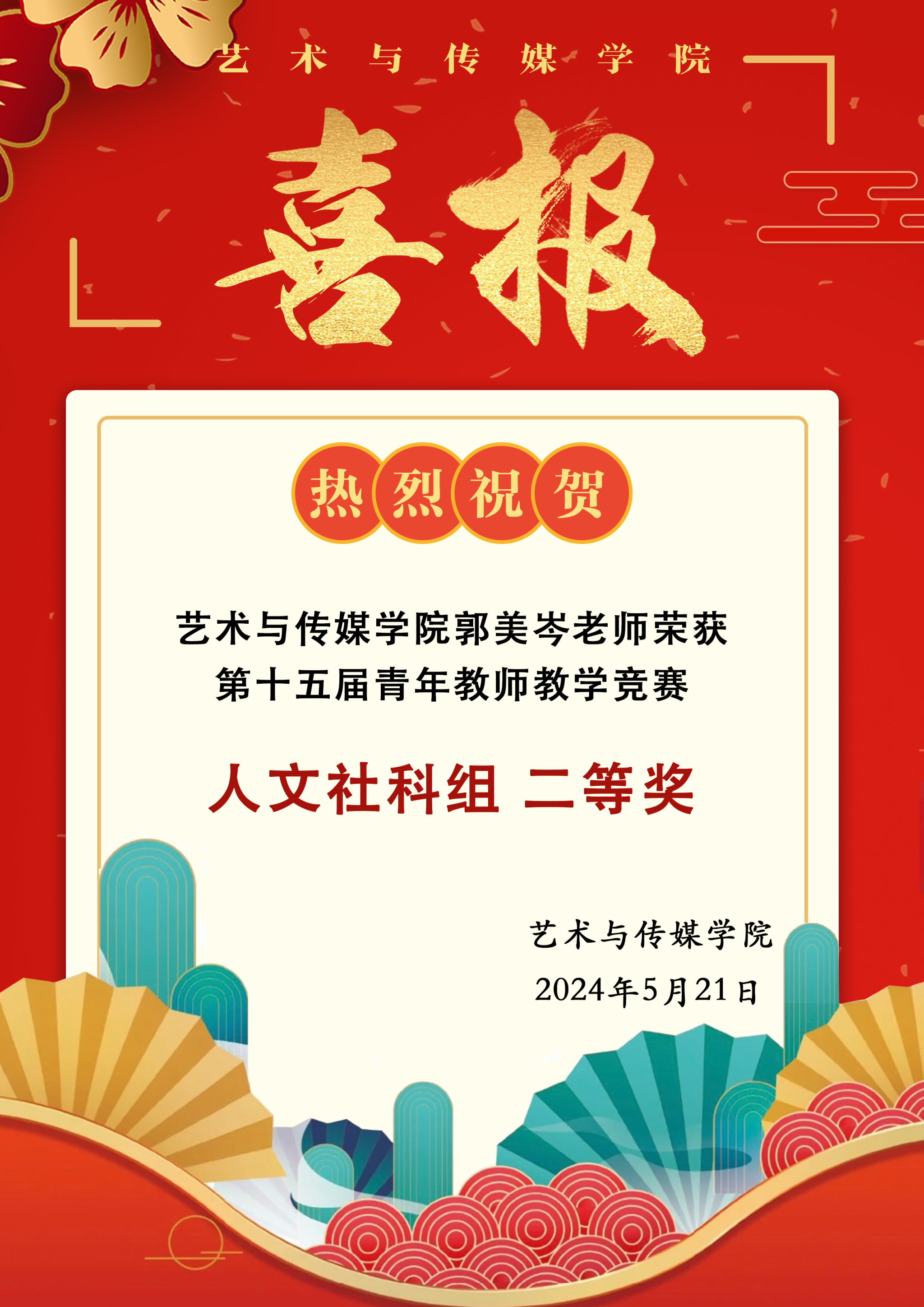 喜报|热烈祝贺杏色 郭美岑老师在第十五届青年教师教学竞赛中荣获人文社科组二等奖!