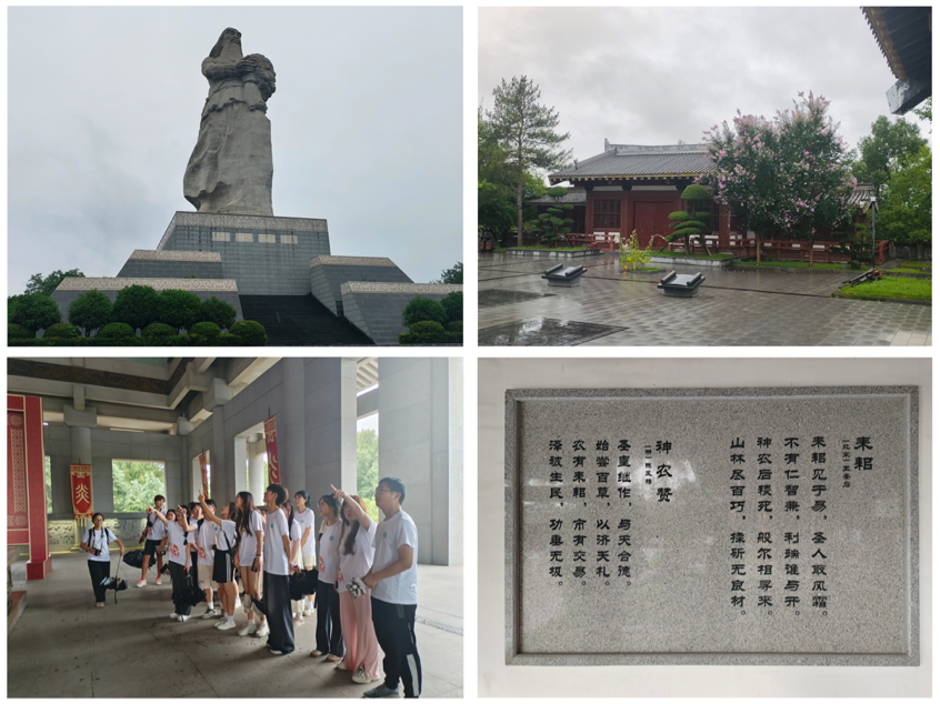 在随州博物馆静谧的展厅中,青铜器的庄严、陶瓷的细腻、玉器的温润,无一不诉说着古人的智慧与匠心,引领着实践团成员穿越时空,领略中华文明辉煌。随即实践团成员们踏上历史的经纬旅程,前往“全省爱国主义教育基地”——炎帝神农故里风景区,体悟农耕文化。紧接着,实践团前往随县文化馆,炎帝祭典的庄严、胡式根雕的精巧、神农酿造洞藏酒制作技艺的独特,让实践团成员们沉浸在传统文化的魅力之中,感受着非遗文化的温度与深度。最后,实践团来到了安居镇的九街十八巷,感受1300余年前的历史风韵,了解青瓦白墙、翘角飞楼独特的建筑特色。实践团成员漫步在这片充满历史底蕴的土地上,深刻感受到华夏文明之根,仿佛穿越时空,亲眼见证了先民们勤劳智慧、勇于开拓的壮丽篇章。