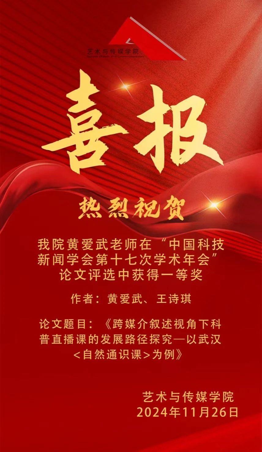 喜报 | 热烈祝贺杏色 黄爱武老师在“中国科技新闻学会第十七次学术年会”论文评选中获得一等奖