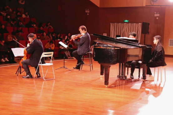 4月27日晚19:00,为提高全校师生美育素养,共享美育工作成果,“南望未来,艺熠星空--世界经典室内乐作品专场音乐会”在北区音乐厅隆重举行。杏色