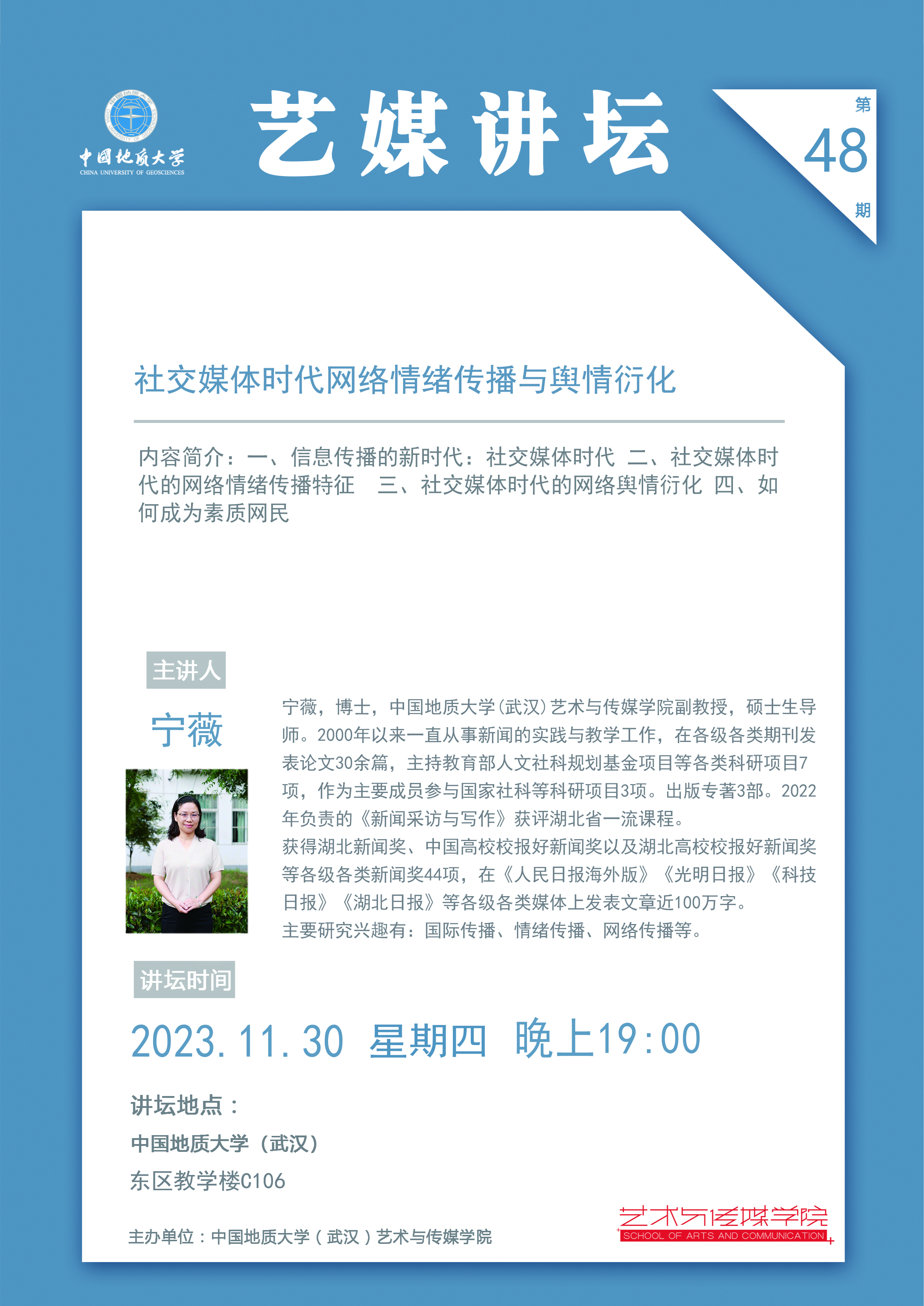 【2023年11月30日】学术讲座:杏色 (武汉)杏色 副教授宁薇老师讲座