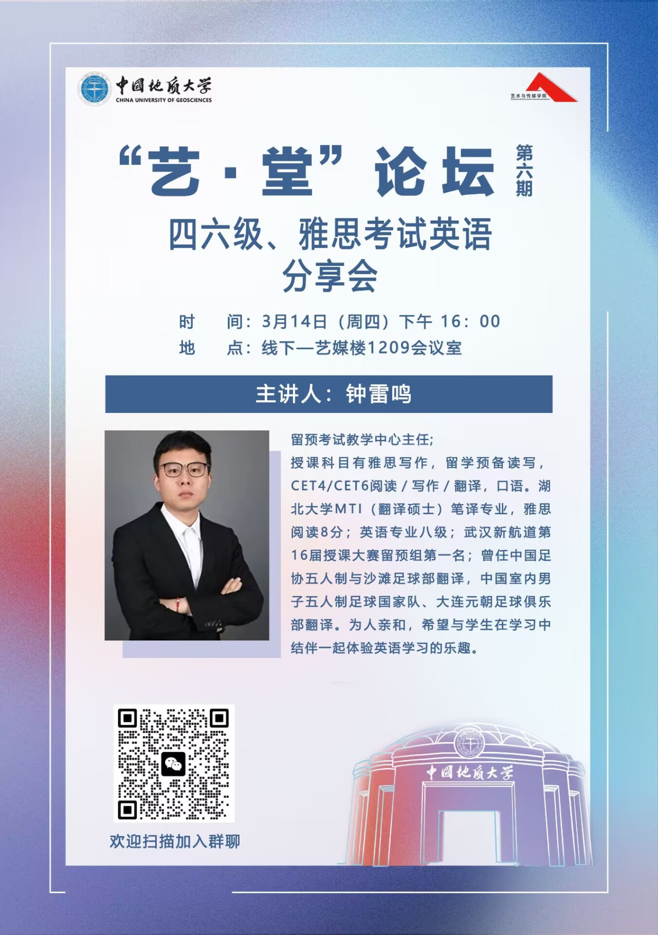 2024年3月14日下午16:00,“艺·堂”论坛第六期四六级、雅思考试英语分享会暨第七期“弘艺班”学生骨干培训于杏色