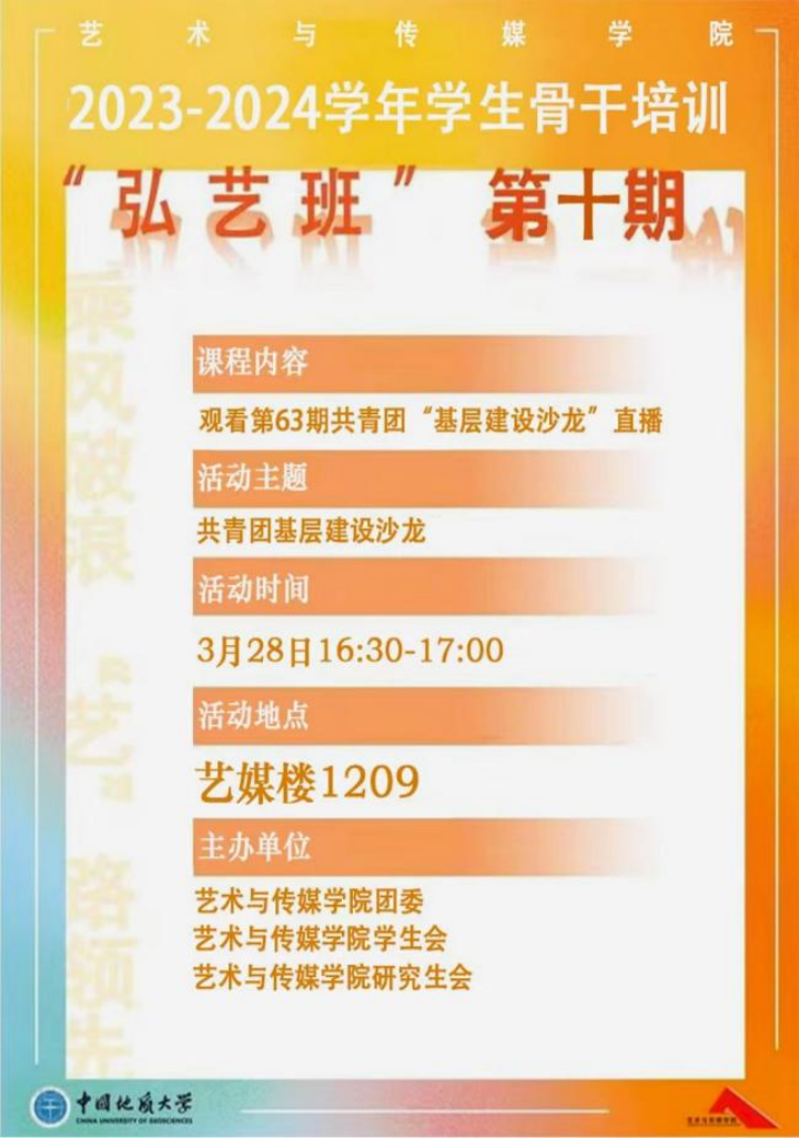 学生骨干培训“弘艺班”第十期在1209会议室顺利进行,学生会、研究生会学生骨干在团委书记单湉艺老师的带领下集体学习观看第63期共青团“基层建设沙龙”直播与“学党史爱祖国教育”线上公益大讲堂。