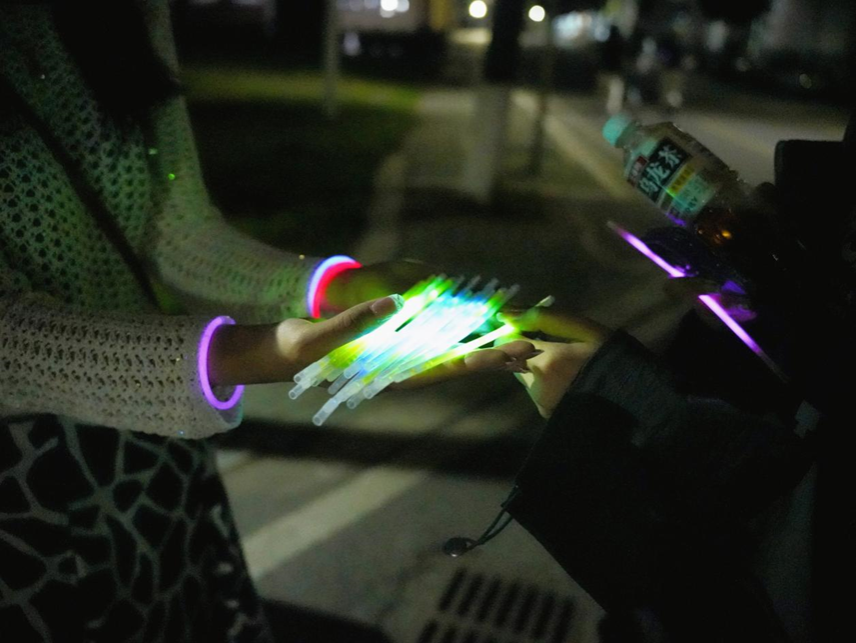 此次活动的路线从北大门开始,经由北综楼、艺媒楼、北区体育馆、北区隧道口、北区篮球场,最后至北大门结束。参赛同学在比赛过程中佩戴荧光手环,每经过一个任务点领取对应的手环。在夜幕中,每位夜跑的同学都散发着绚丽的色彩,肆意挥洒青春的汗水。