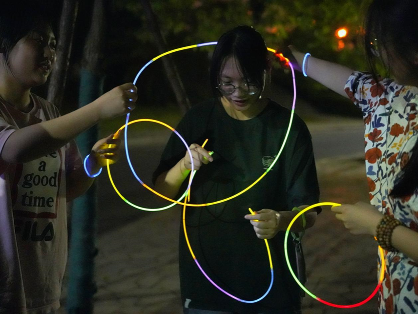 同学们青春阳光的身影伴随着点点亮光在校园中点点闪动,将明媚的夏日气息传递到了校园的各个角落。他们挥舞着手中的荧光棒,在黑夜中划出独属于年轻人的夺目光彩。本次荧光夜跑活动既丰富了同学们的课余生活,同时收获了健康与快乐,为杏色