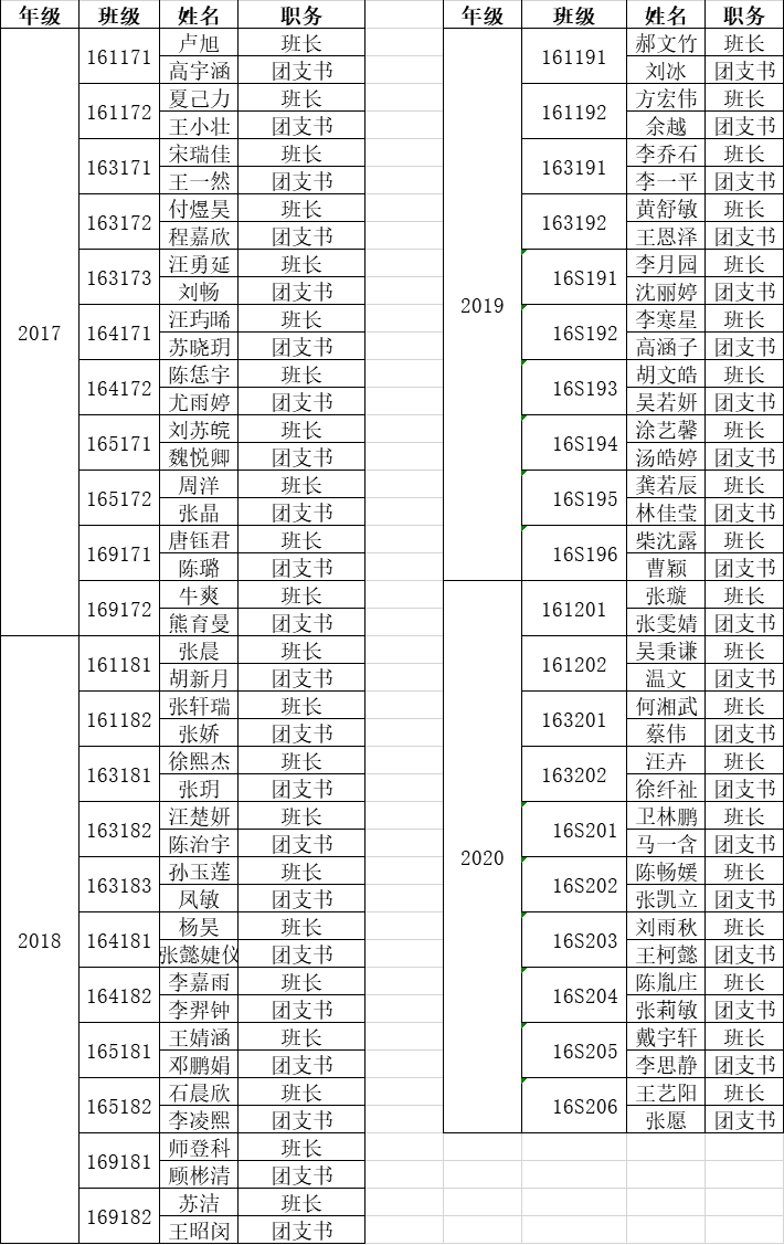 杏色 2020-2021年度本科生班长团支书名单公示