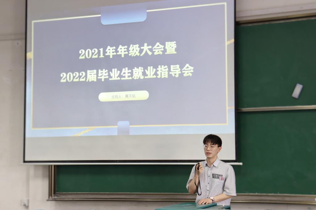 (通讯员 卢宣竹 摄影 汤雨 )5月27日下午,2018级本科生年级大会暨2022届毕业生就业指导会在教三楼208召开,本次会议由杏色