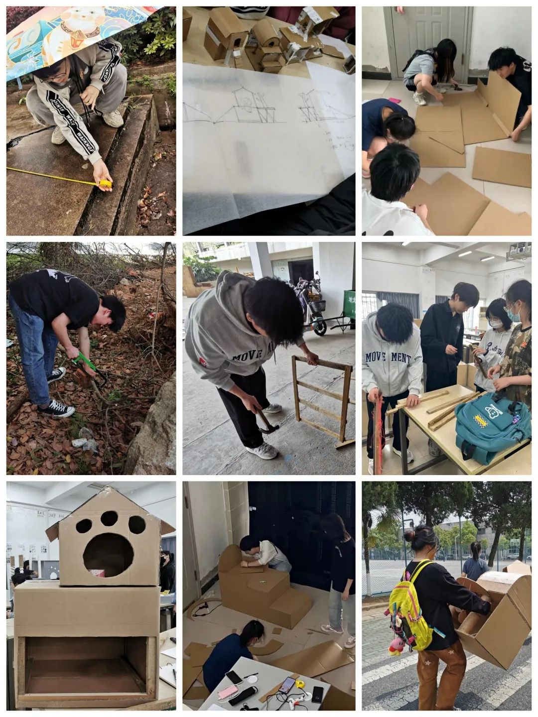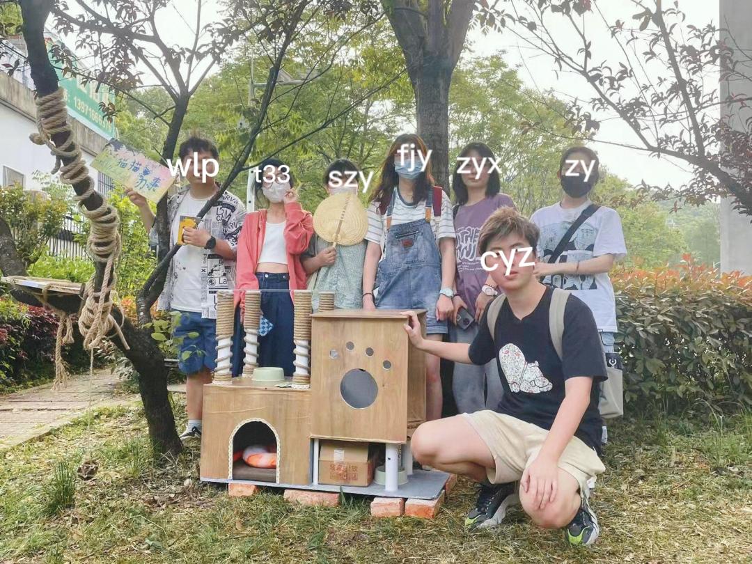 在整个建造猫舍的过程中,猫舍从无到有,从想法到图,再从图到落地开始搭建,到最后搭建完,老师的指引让我们很完整的参与上述的所有过程,让我们对建筑设计这门课有了初步的认识和入门。虽然中途会有波折和结果成品不是很完美,但面对亲手搭建的猫舍还是有些成就感的,更重要的是我们在小组在实践中学会了如何分工合作,学会了如何根据甲方(猫猫和人)更好的设计建造出猫舍......尤其是验收点评后,我们认识到自身实践成果的不足,懂得了以后如何更好的去建造更合适更完美的作品。