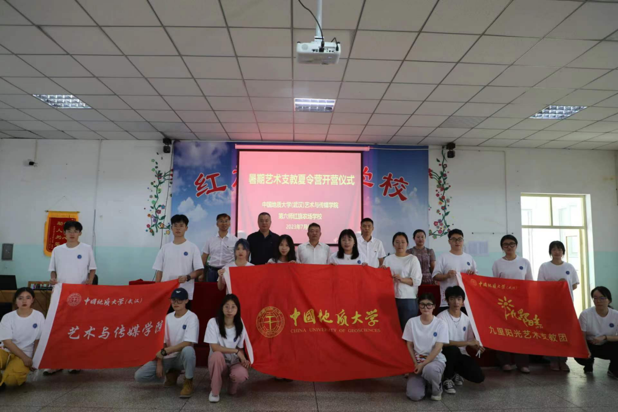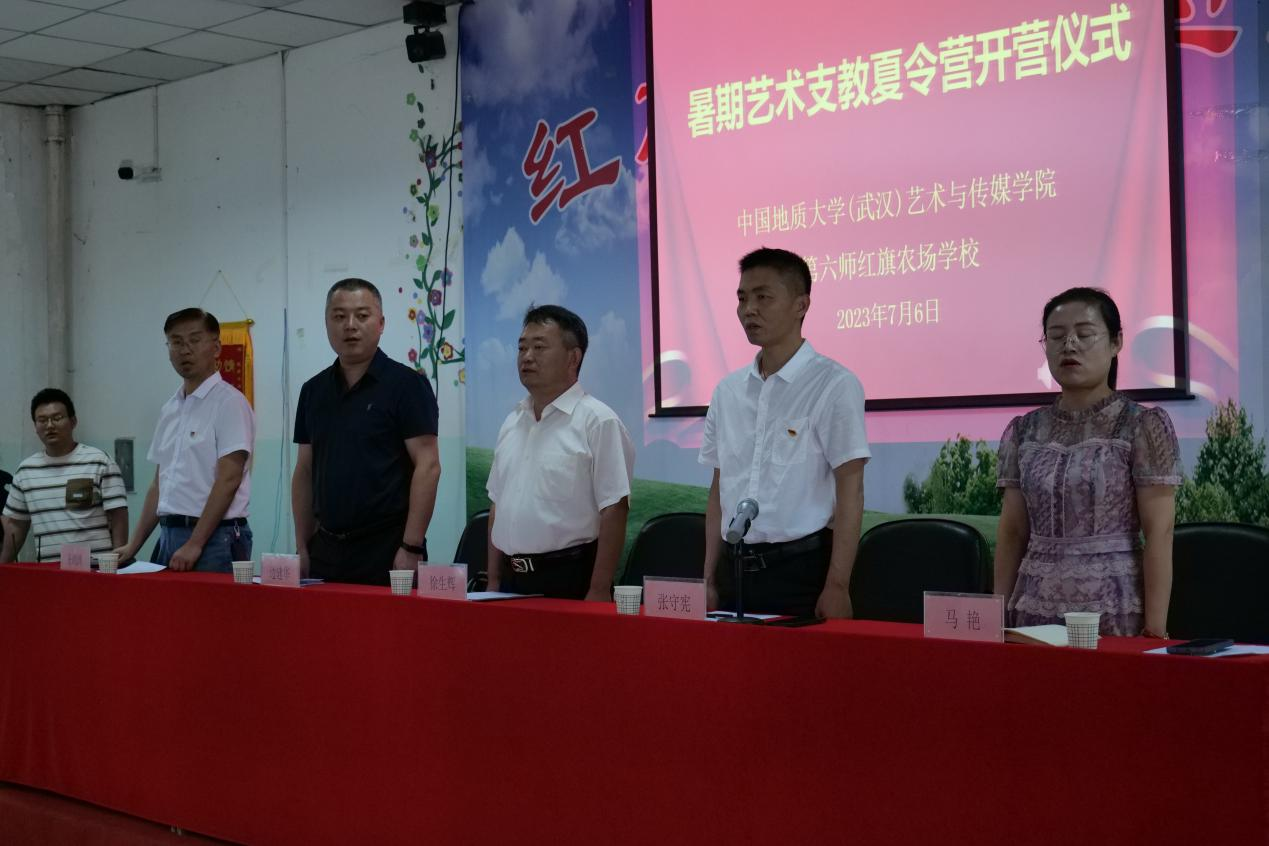党委副书记边建华,红旗农场学校党支部书记、校长张守宪,副校长王尚涛、马艳,九里阳光艺术支教团全体成员以及红旗农场学校的师生代表参加本次开营仪式,活动由副校长王尚涛主持。