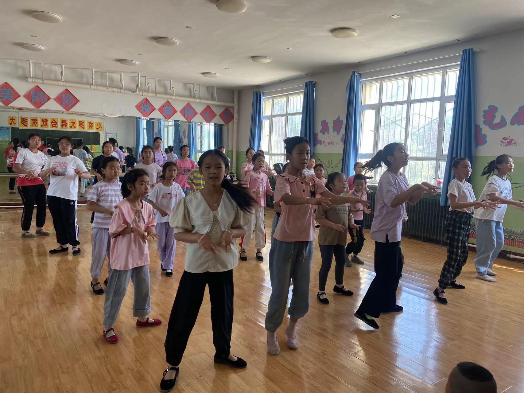 “红旗在我心,‘艺’路向前行”,7月11日,筹备已久的艺术夏令营文艺汇演已然进入了节目的最终彩排阶段。为了呈现出最好的节目效果,九里阳光艺术支教团的志愿者们在紧锣密鼓地做着最后的筹备工作,扇子舞、合唱、美术模特秀、诗歌朗诵等,支教老师们按照前期的分工安排带领着各自班级的小朋友一遍遍熟悉动作、一次次确认舞步、一句句调整台词,大家的努力付出和细心斟酌只为给观众带来最精彩的视觉感受。