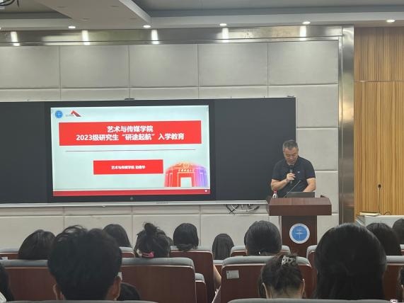 于9月8日全天在艺媒楼1104开展“研途启航”入学教育。副院长彭静、党委副书记边建华、研究生辅导员单湉艺、党建办公室主任陈习良、研究生教学秘书喻硕及全体2023级研究生参加此次会议,会议由研究生辅导员单湉艺主持。