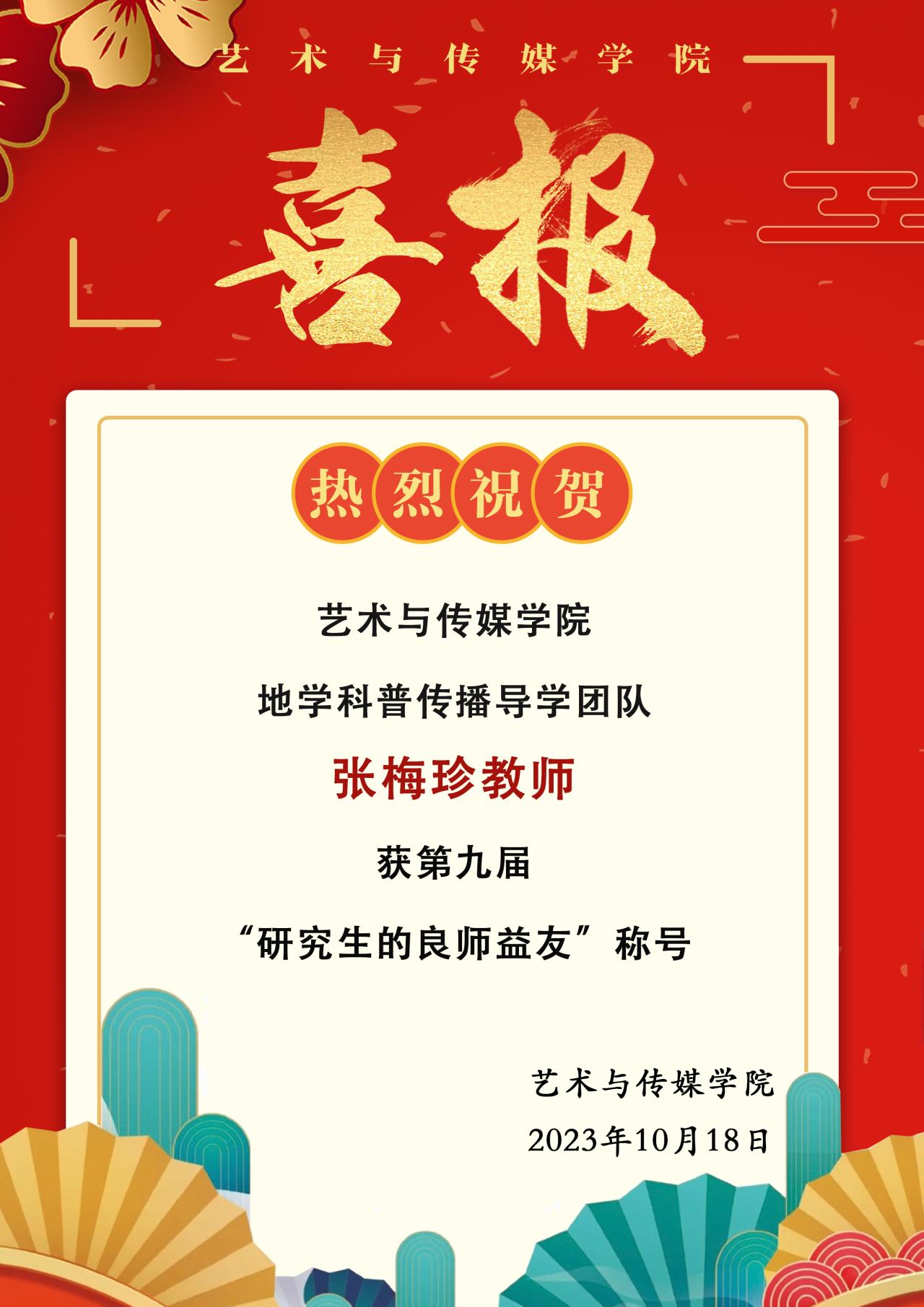 喜报 | 热烈祝贺杏色 张梅珍教师荣获第九届“研究生的良师益友”称号