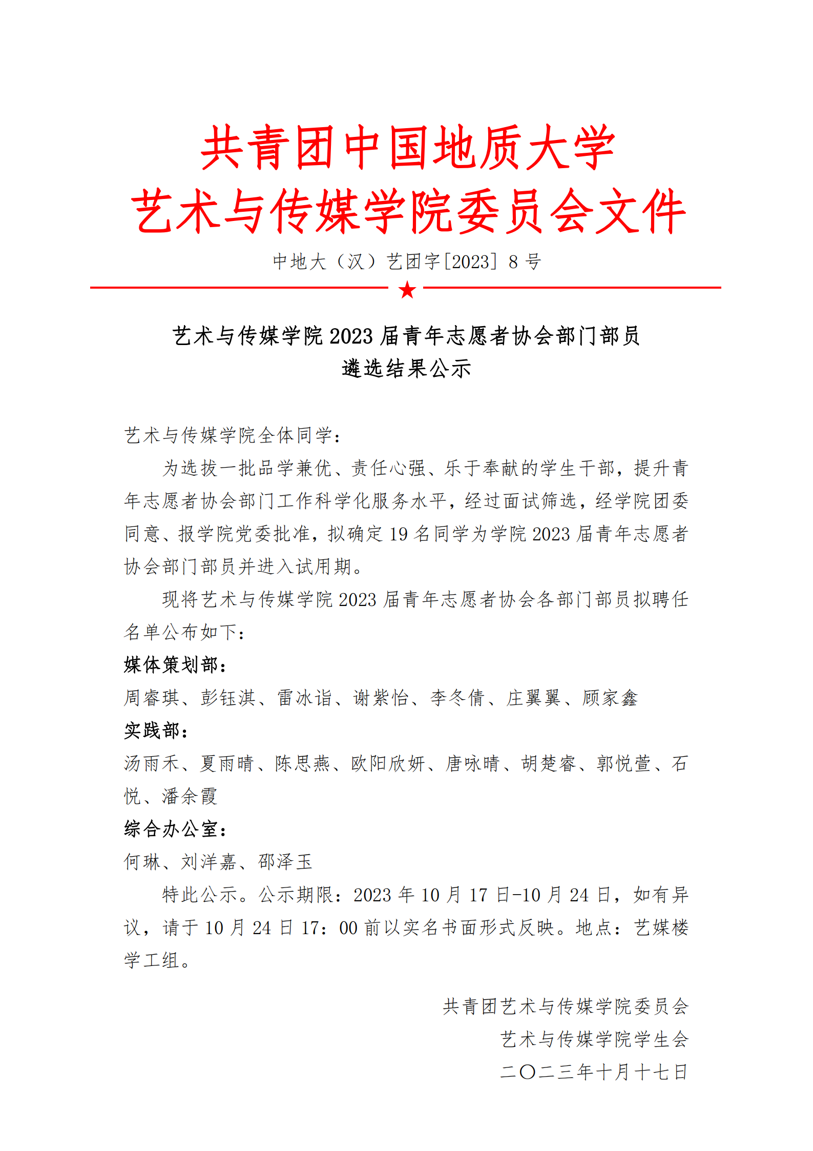 通知 | 杏色 2023届青年志愿者协会部门部员遴选结果公示