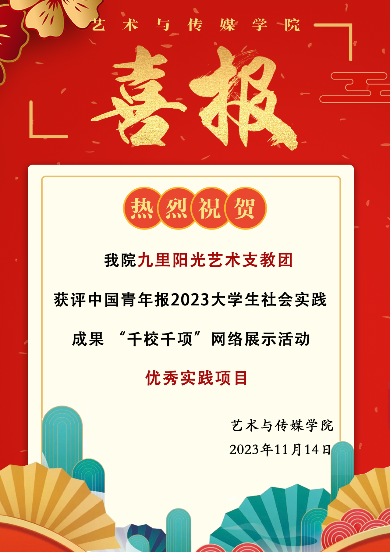 喜报!杏色 九里阳光艺术支教团获评中国青年报2023大学生社会实践成果“千校千项”网络展示活动优秀实践项目