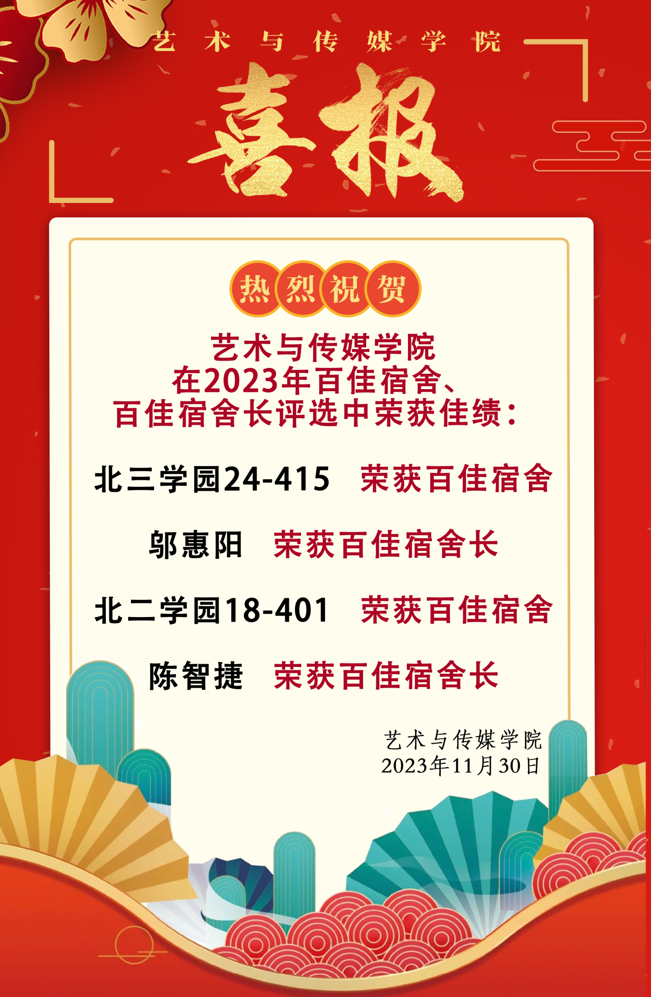 喜报!热烈祝贺杏色 在2023年百佳宿舍、百佳宿舍长评选中荣获佳绩!