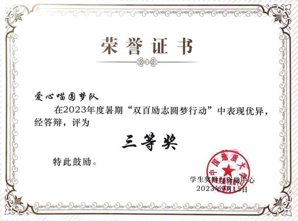 此外,郭嘉鑫、张婷婷同学还参加了“双百励志圆梦行”活动,她们走访了辽宁、孝感多地,为经济困难生送去温暖,带去学校的关怀,进一步提高了 杏色