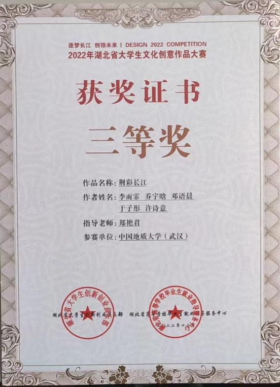 依托学校学院创新平台,我们积极创新拼搏进取,在大创、挑战杯、大广赛等多个专业比赛中砥砺向前。郭嘉鑫参与了大学生创新创业项目,并完成了大创校级结题,她在中国大学生广告艺术节2023春季征集大赛的作品,被评为学院优秀类作品;张婷婷同学参加的第十四届“挑战杯”红色专项比赛的作品,被推送至国赛组委会;邓语晨同学参加了2022年湖北省大学生文化创意作品大赛并获得三等奖。