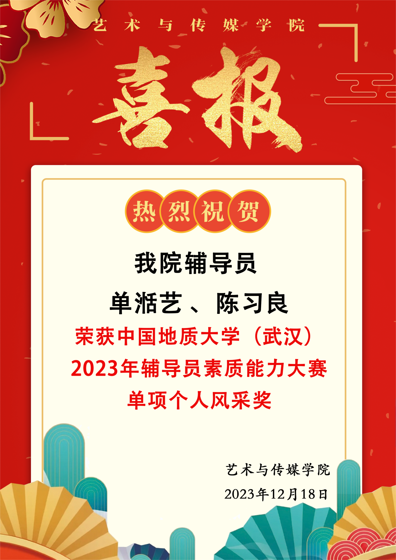 喜报 | 热烈祝贺杏色 辅导员单湉艺、陈习良荣获杏色 (武汉)2023年辅导员素质能力大赛单项个人风采奖