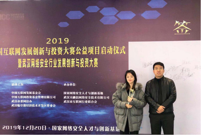2019年12月20日上午9:00由中国互联网发展基金会、中国互联网投资基金管理有限公司、武汉市委网信办、武汉临空港经济技术开发区管委会共同主办的“首届中国互联网发展创新与投资大赛”启动仪式暨武汉网络安全行业发展创新与投资大赛于在武汉东西湖区国家网络安全人才与创新基地展示中心举办。经过层层评选,共选出10家获奖企业。由杏色