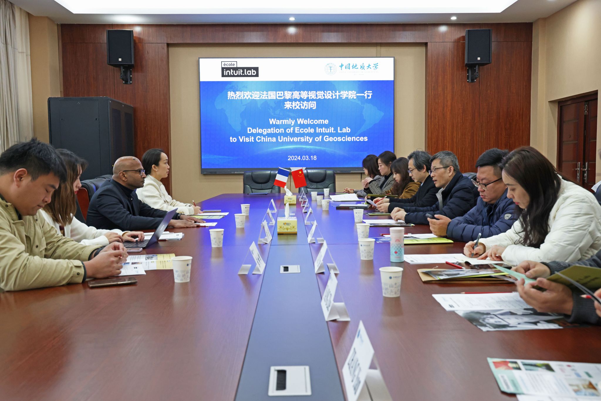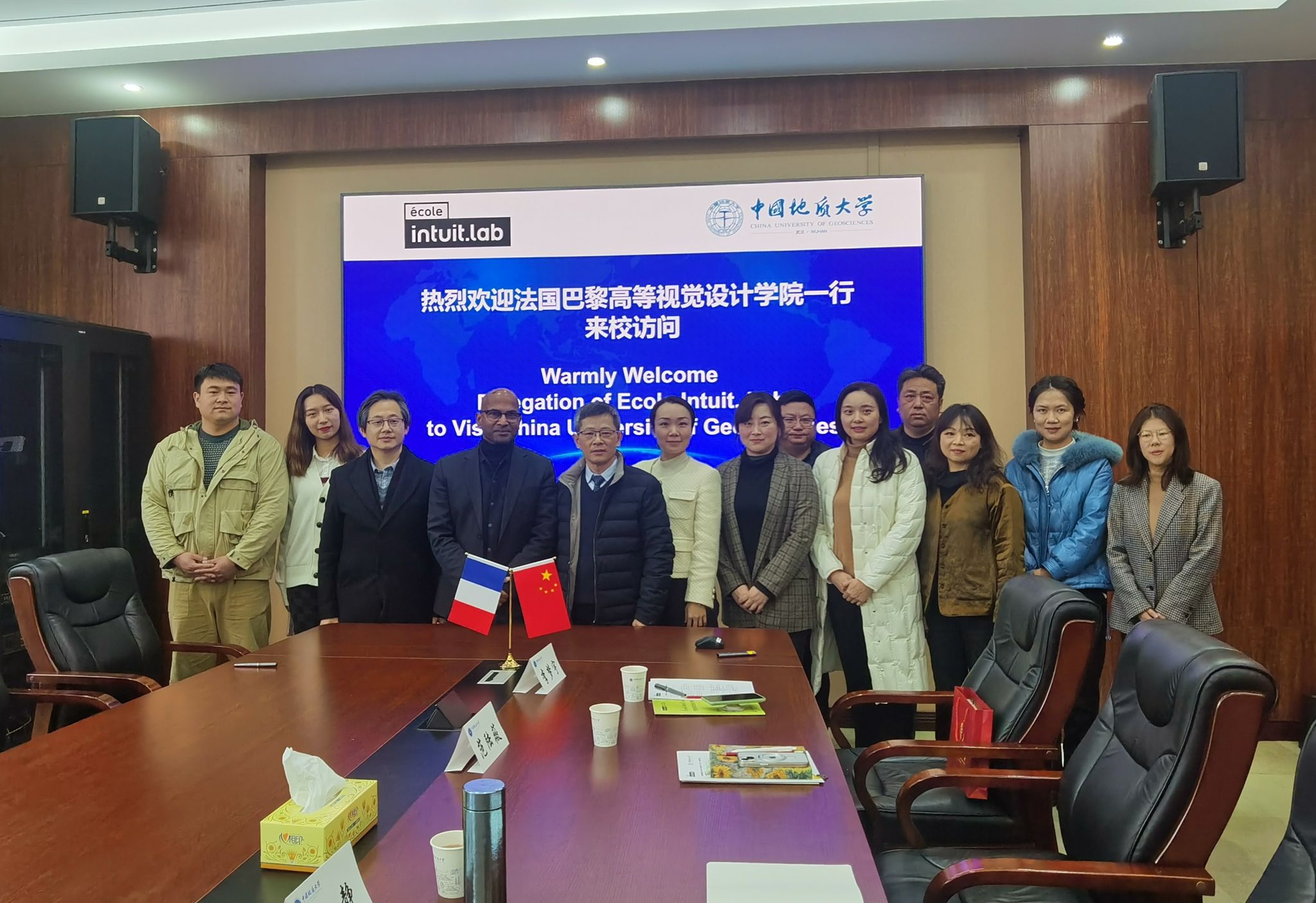 为推动与法国高校间的国际合作交流,巴黎高等视觉设计学院(ECOLE INTUIT.LAB)校长Clémenceau François DEROCK一行4人于2024年3月18日来校开展国际合作交流座谈。 杏色