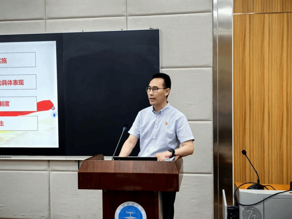 会议第二项,冷再心书记为大家讲授廉洁教育专题党课。冷书记从党的建设高度出发,深刻剖析党风廉政建设是党保持先进性、纯洁性的关键所在,关乎党的执政根基与国家长治久安。同时,结合近年发生的年轻干部因贪腐落马的典型案例,深入解读廉洁自律在职业发展与人生道路上的重要意义。生动的案例、透彻的讲解,让毕业生党员们深刻领悟到廉洁自律不仅是纪律要求,更是立身之本。这节党课为即将踏入社会的毕业生党员们筑牢了拒腐防变的思想防线,指引他们在未来坚守底线、行稳致远。