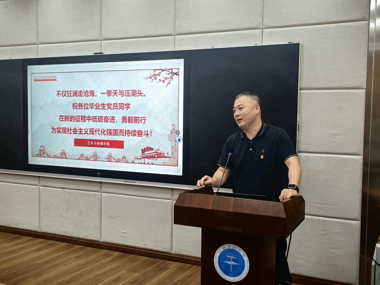 于2025年6月12日下午5点于艺媒楼1104报告厅召开了2025届毕业生党员党风廉政教育暨党员组织关系转接工作会议。学院党委书记冷再心,党委副书记边建华,学院专职辅导员单湉艺、姜盛为,兼职辅导员赵立堃及全体2025届毕业生党员参加本次会议。本次会议由辅导员单湉艺老师主持。