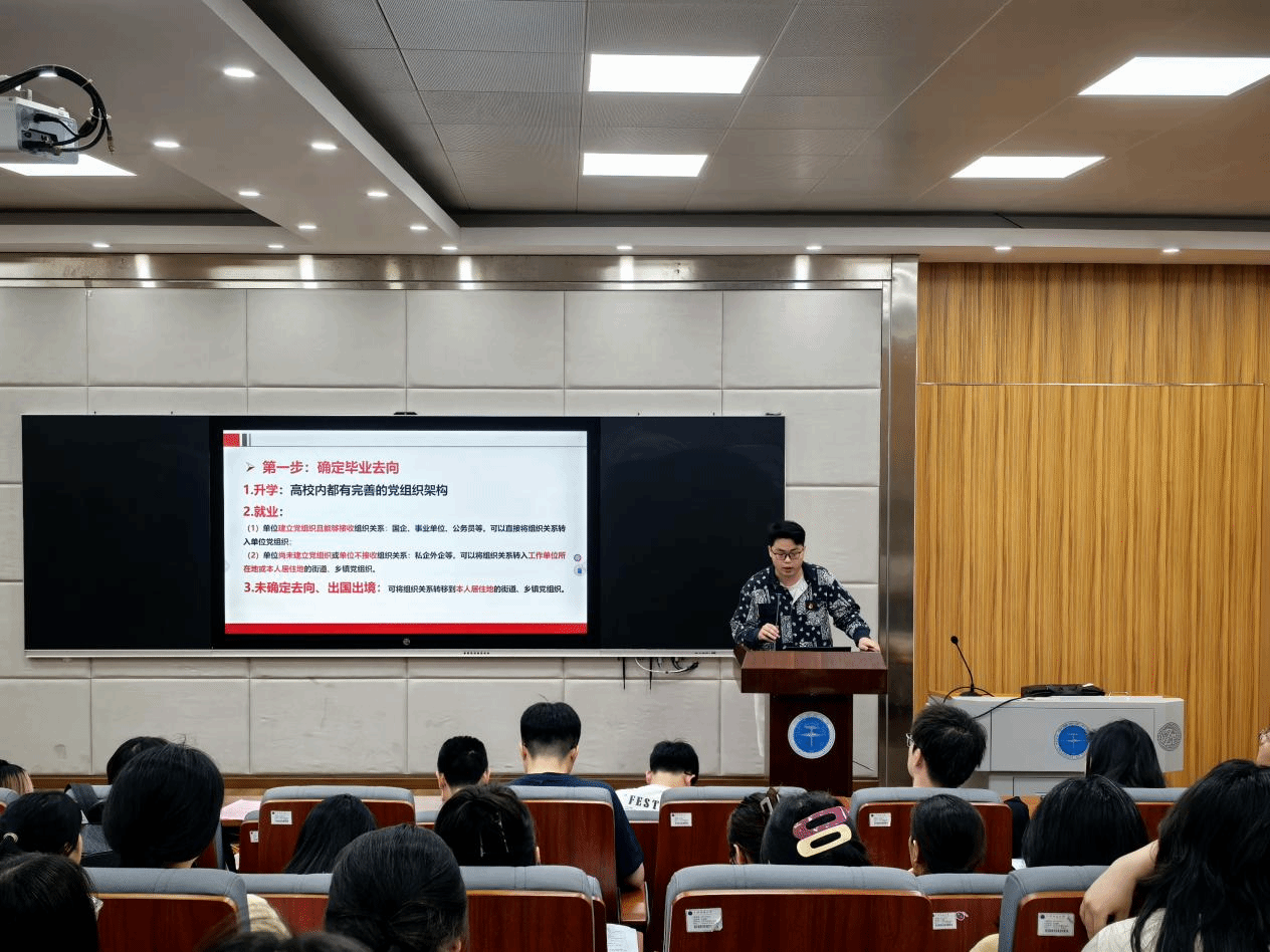 会议第三项,学院兼职辅导员赵立堃详细讲解了党员关系转接的注意事项及转接流程。提醒毕业生党员及时、准确地完成党组织关系转接工作,确保毕业生党员组织关系的延续性与规范性。