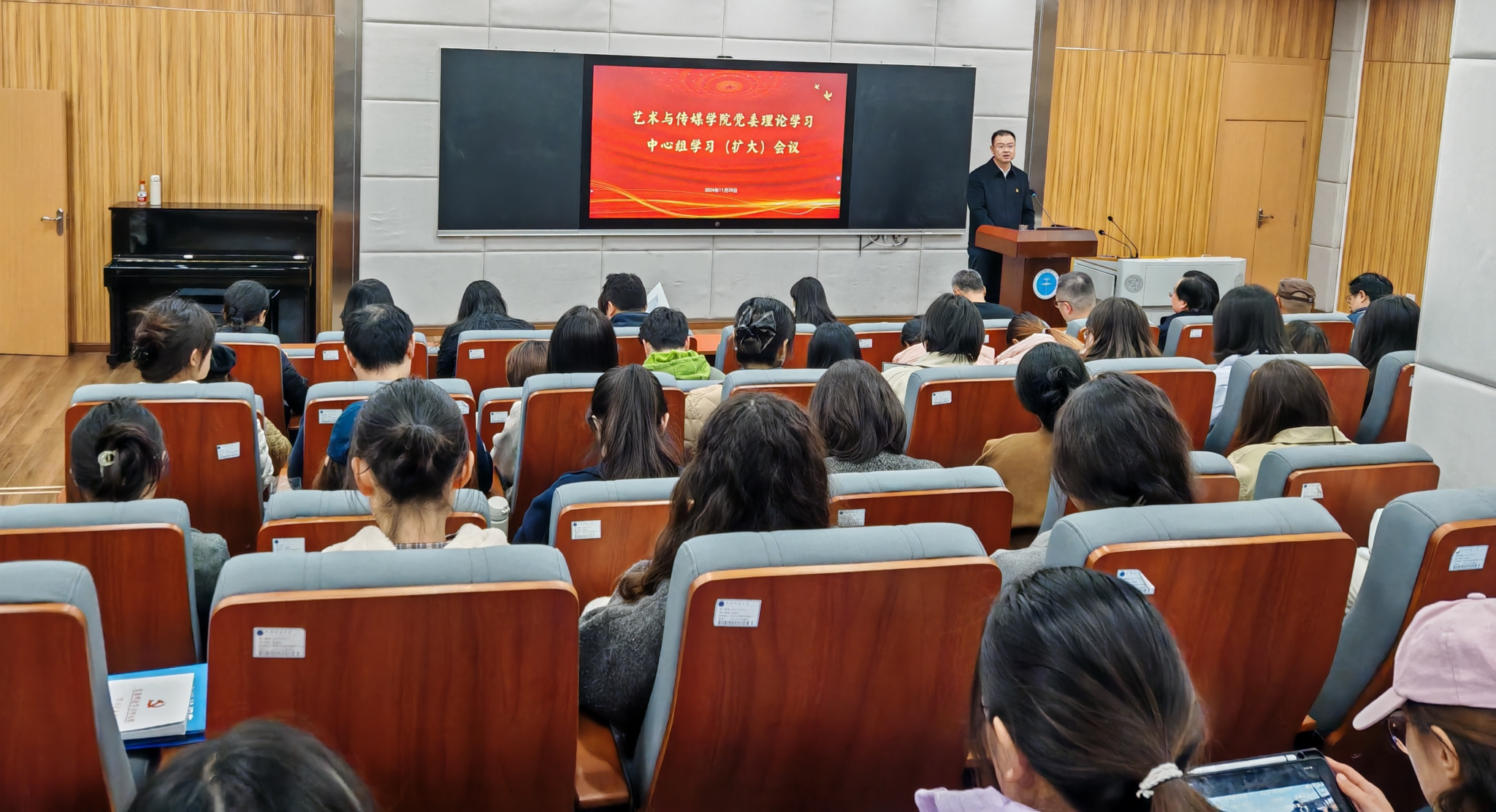 在艺媒楼1104报告厅召开党委理论学习中心组集中学习(扩大)会议,会议特邀请红旗渠精神宣讲团常务副团长、林州市精神文明建设促进中心主任、红旗渠廉政教育学院特聘教授杨玉东同志作“红旗渠精神及其时代价值”专题报告。全体教职工、学生党员、入党积极分子参加了会议,会议由党委书记晋曦主持。