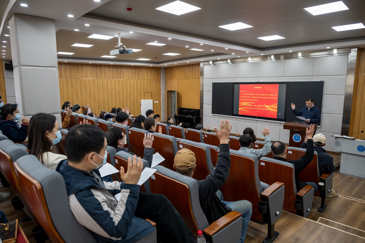 (武汉)第十届教职工代表大会暨第十九届工会代表大会代表、推荐选举第十九届工会委员会委员候选人暨第十届教代会执行委员会候选人初步人员的通知》。通过举手投票的方式,与会教职工审议通过了代表候选人建议名单,审议通过了大会选举监票人、计票人建议名单。