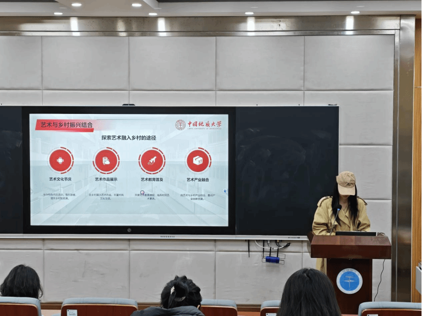 答辩过程中,各支部和部门竞相展示工作亮点。其中,已成为学院品牌项目的“艺熠生辉”党建论坛,作为各支部推动“党建与专业深度融合”的典范,被频繁提及并引发广泛共鸣。汇报人通过PPT生动再现了第九期论坛的盛况:各学生党支部主导或参与的“艺术赋能乡村振兴”、“鲜花助脱贫,花语送党恩”、“AI工具的跨领域设计”、“薪火相传——从非遗传承看文化自信”等一系列艺术党课,巧妙地将党的创新理论、乡村振兴战略、文化自信自强等宏大主题,转化为可感、可知、可参与的视觉语言与艺术实践。这些成果不仅是学生党员专业能力的集中展示,更是他们运用艺术载体服务社会、阐释理论、凝聚共识的生动体现,充分彰显了杏色