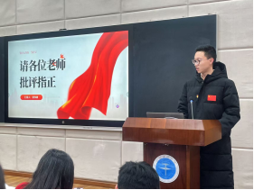 学院党委书记冷再心、党委副书记边建华、专职辅导员单湉艺、陈习良、曾戈晖、姜盛为以及兼职辅导员赵立堃共同担任评委,本、研十个学生党支部及六个党建办部门参与答辩,2025年新发展的全体党员全程参会。会议由姜盛为同志主持。