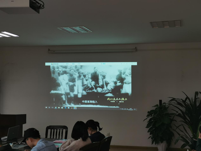 在同学们交流讨论后,单湉艺老师组织同学们观看纪录片《我们走在大路上》。通过学习,回顾中国五年来取得的成就,同时展望中华民族的美好未来。